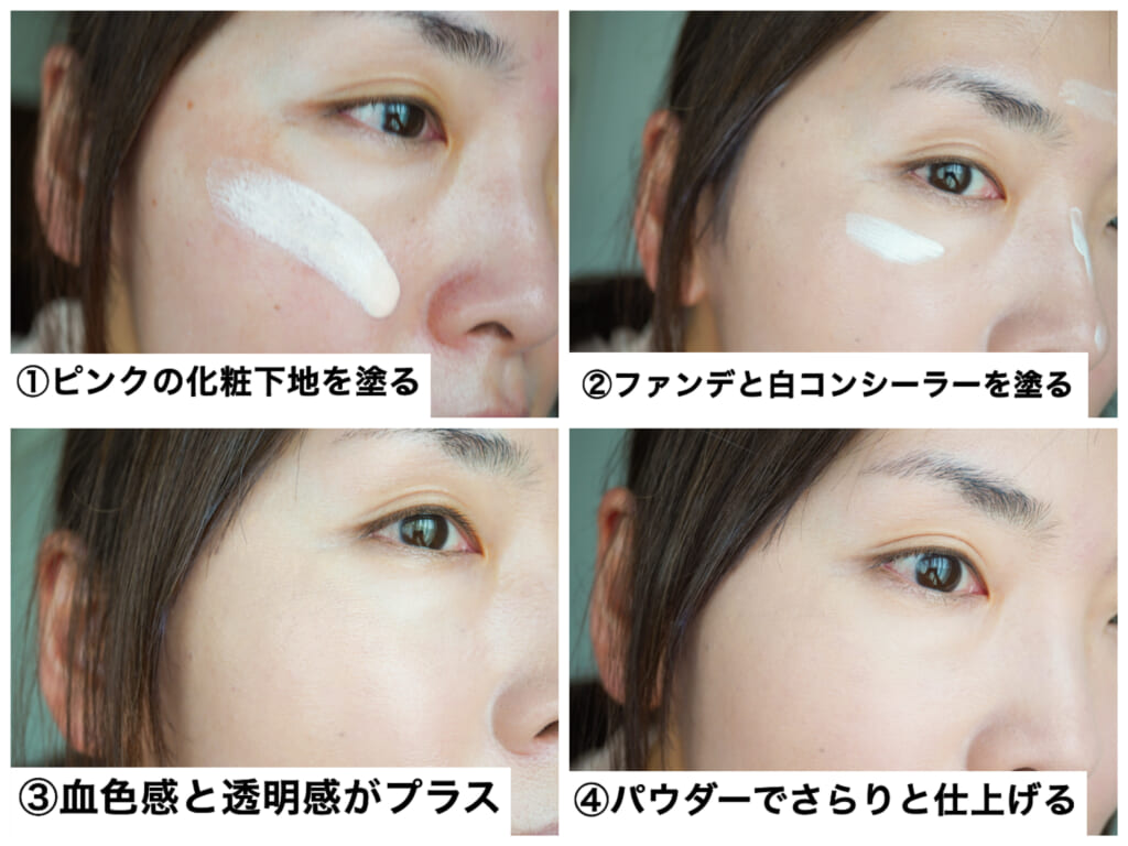 ■ピンクの化粧下地と白のコンシーラーで、血色感と明るさをON!