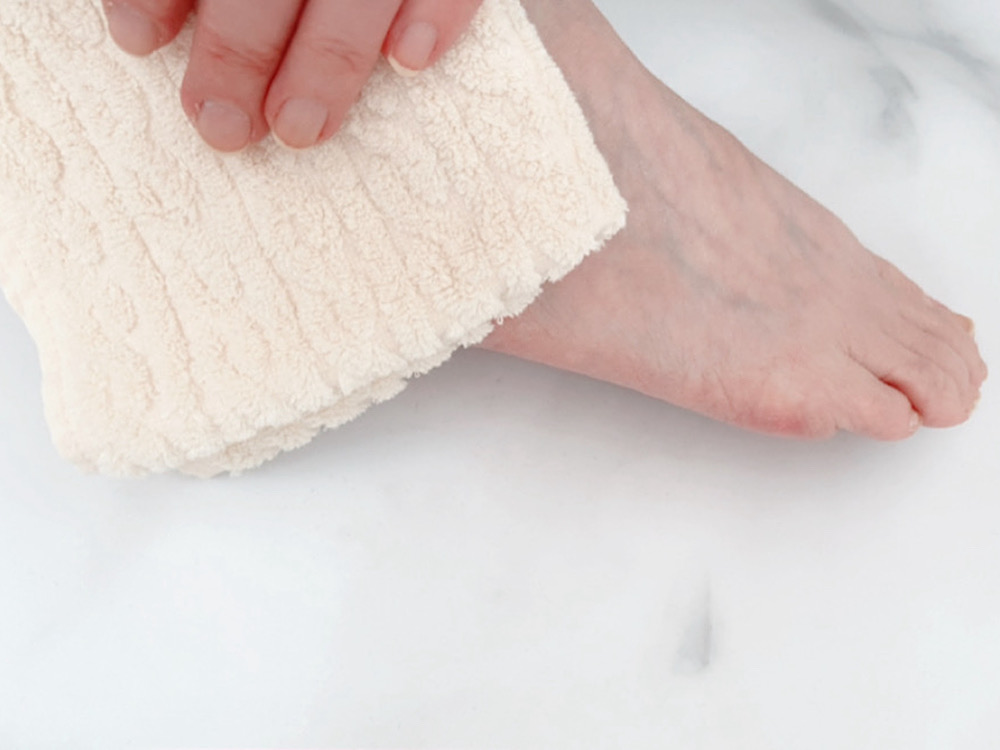 お風呂から出た直後は、肌がうるおいを一番抱え込んでいる“ゴールデンタイム”。とくに、かかとは皮膚が厚く乾燥しやすい場所なので、ケアのタイミングがとても重要です。
