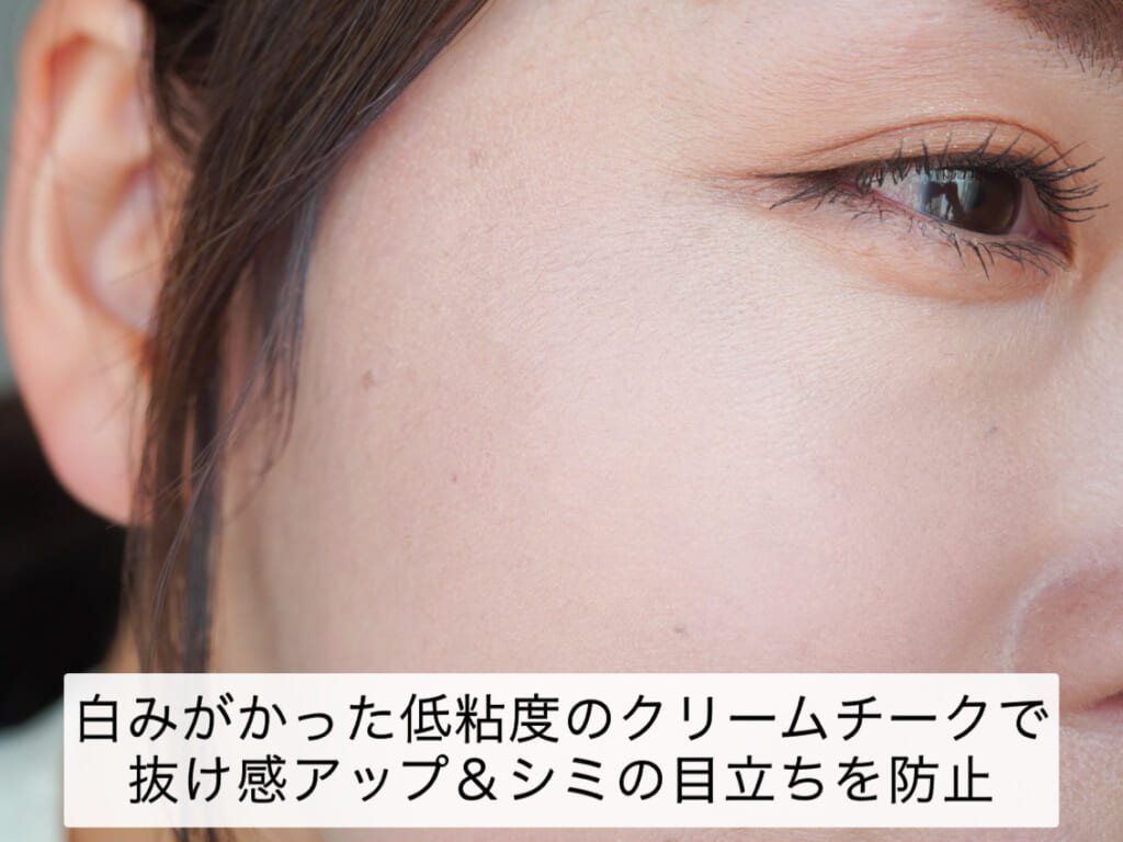 ■淡め・硬めのクリームチークで垢抜け&シミの目立ちを防止