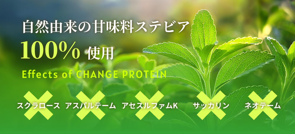 『チェンジプロテイン』の甘味料には、自然由来の甘味料であるステビアを100%使用しています。